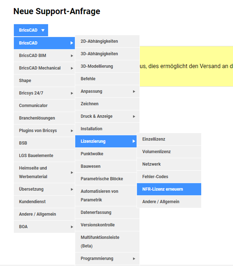 Um BricsCAD NFR-Lizenz zu beantragen oder verlängern zu können, müssen Sie eine Anfrage direkt an Bricsys schicken.
