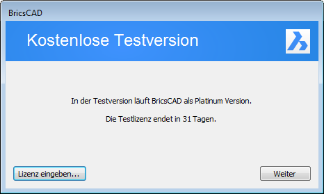 Eine Testlizenz für die Ausführung von BricsCAD im Testmodus zu aktivieren
