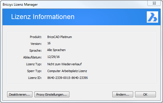 Die BricsCAD Lizenzaktivierung benötigt immer eine Internet-Verbindung.