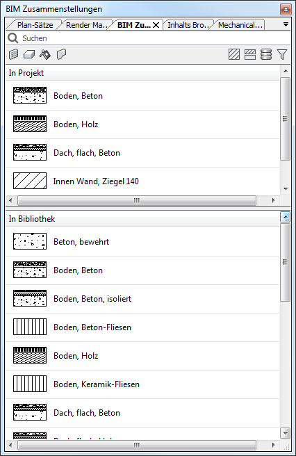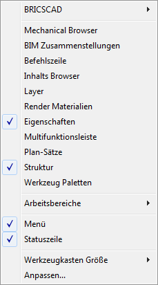Die folgenden Panels können angedockt werden: Befehlszeile, BIM Zusammenstellungen, Inhalts Browser, Layer, Mechanical Browser, Eigenschaften, Render Materialien, Multifunktionsleiste, Plan-Sätze, Struktur, Werkzeug Paletten