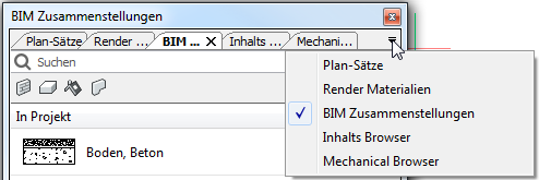 Panels können in Registerkarten gruppiert werden. In Registerkarten gruppierte Panels können entweder angedockt oder frei sein.