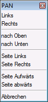 Der Befehl Pan bewegt die Zeichnung in eine beliebige Richtung: horizontal, vertikal oder diagonal. Die Vergrößerung der Zeichnung bleibt die gleiche, wie auch ihre Orientierung im Raum. Es ändert sich nur der Teil der Zeichnung der angezeigt wird. Der Cursor ändert sich in eine Hand (