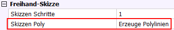 Ob mit dem Werkzeug Skizze die Folge der Segmente als einzelne Linien oder als Polylinie erzeugt wird, wird durch die System-Variable Skizzen Poly (skpoly) definiert. Wenn die Einstellung auf EIN geschaltet ist, erzeugt das Werkzeug Skizzeeine Polylinie.