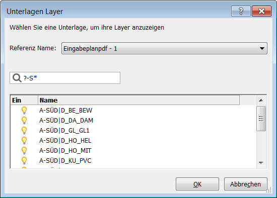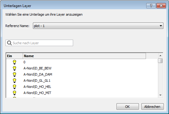 Der Dialog Unterlagen Layer wird geöffnet.