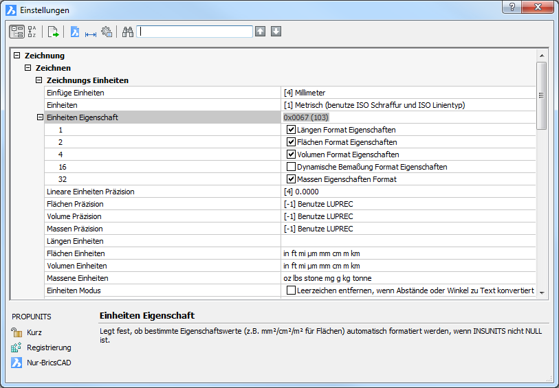 Erweitern Sie die Einstellungen Einheiten Eigenschaft unter Zeichnung / Zeichnen / Zeichnung Einheiten.