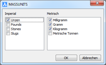 ) und geben Sie die gewünschten Masse Einheiten im Dialog MASSUNITS ein.