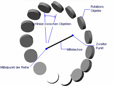 Mittelpunkt der Reihe: Wählen Sie einen Punkt, oder geben Sie die x,y,z Koordinaten ein.