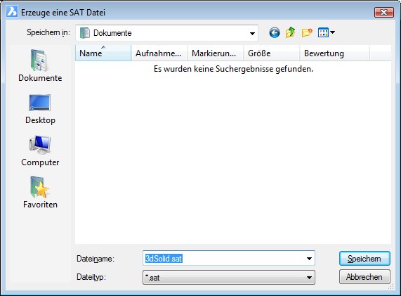 Exportiert 3D-Volumenkörper und Flächen Objekte in das Format SAT (SAT steht für "Speichern Als Text").