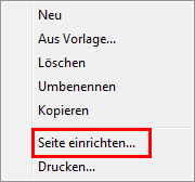 Seiteneinr - erzeugt und bearbeitet Seiten Einrichtungen zum Plotten von Zeichnungen im Zeichnungs Explorer.