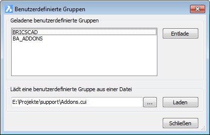 Listet die benutzerdefinierten Dateien auf, die in BricsCAD geladen sind. |