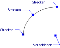 Ziehen Sie am Griff des Endpunktes und des mittleren Punktes, um den Bogen zu dehnen.