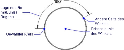 Wählen Sie den zweiten Punkt auf dem Kreis; die Winkelbemaßung wird zwischen den zwei Punkten erzeugt. |