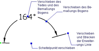 Wählen Sie eine Winkelbemaßung aus. Beachten Sie die Griffe.