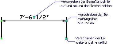 Lineare Bemaßungen können direkt über die Griffe bearbeitet werden: