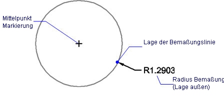 Ein Kreis mit einer außerhalb platzierten Radiusbemaßung