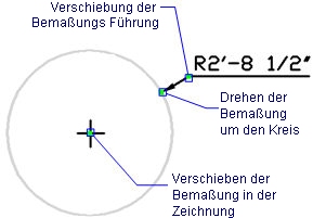 Radiusbemaßungen können direkt über Griffe bearbeitet werden: