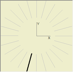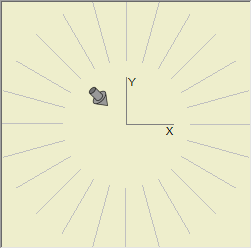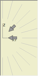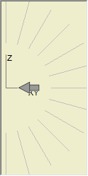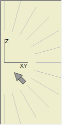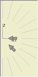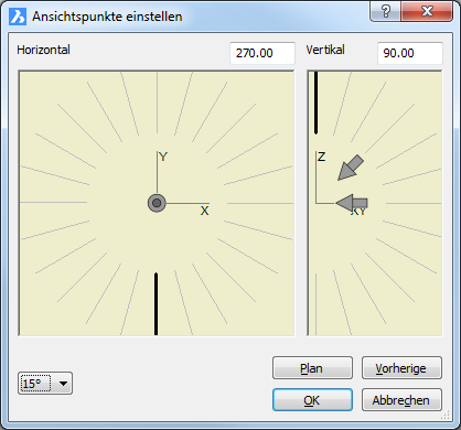 Klicken Sie in den inneren Halbkreis. Blickrichtung ist horizontal.