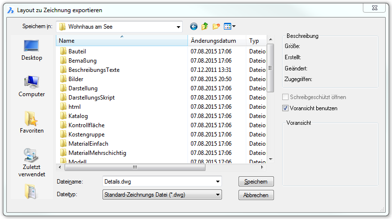 Export - exportiert eine Zeichnung in einer Vielzahl von Vektor- und Rasterformaten.