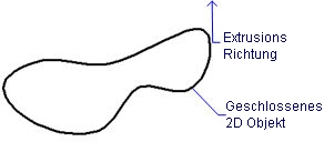 DmExtrusion - erstellt 3D-Volumenkörper durch Extrudieren von geschlossenen 2D-Objekten oder Regionen.