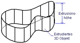 Bestimmt die Höhe der Extrusion: Die Extrusionshöhe wird senkrecht zum ausgewählten Objekt gemessen. Verwenden Sie die Option Richtung, um die Extrusionsrichtung anders einzustellen.