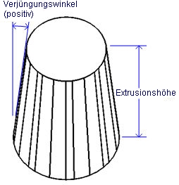Bestimmt den Verjüngungswinkel für die Extrusion. Sie werden aufgefordert: Geben Sie den Verjüngungs-Winkel für die Extrusion an