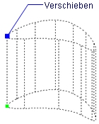 Wählen Sie den extrudierte Volumenkörper. Beachten Sie, dass es zwei Griffe gibt.