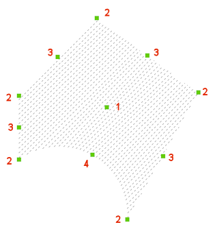Beachten Sie, dass es einen zentralen Griff (1), Griffe an jedem Grenze Scheitelpunkt (2) und Griffe in den Mittelpunkt jedes Segments jeder Grenze (3 und 4) gibt. -