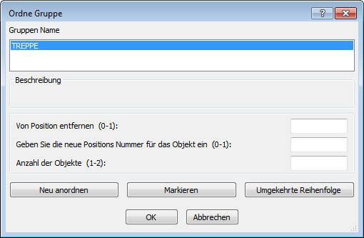 Ändert die Anordnung der Objekte in einer Gruppe. Das Dialogfenster Ordne Gruppe wird angezeigt: |