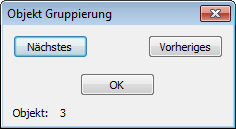 Nächster - markiert das nächste Objekt in einer Gruppe. Vorher - markiert das vorherige Objekt. OK - kehrt zum Dialogfenster Ordne Gruppe zurück. |