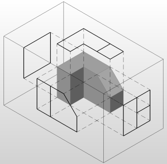Solprofil - erstellt eine verdeckte Kanten Darstellung eines 3D-Volumenkörpers im Layout Ansichtsfenster.