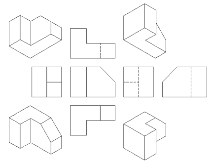 Definiert das Layout der Ansichten. Sie werden aufgefordert: Art der Projektion wählen [Erste/Dritte] Ersten Winkel oder europäische Projektion: