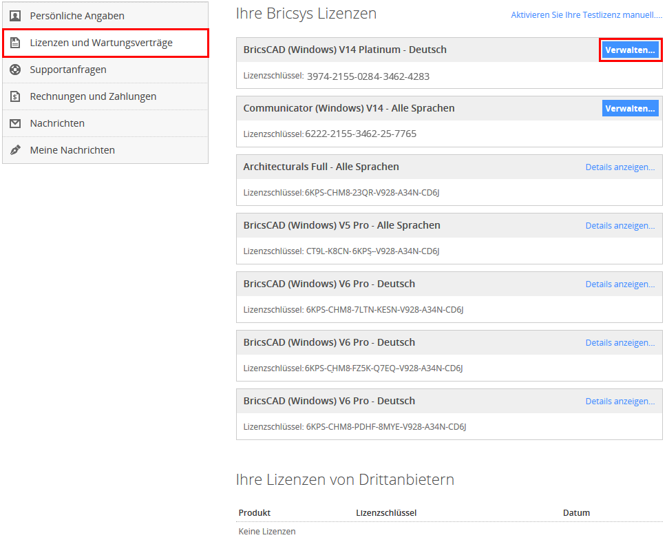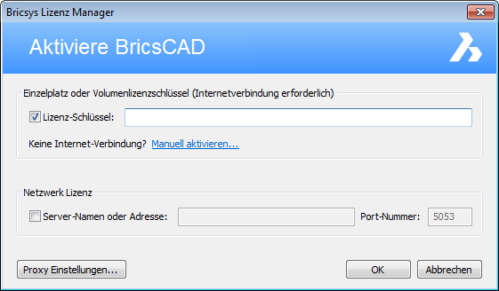 Für die Classic, Pro und Platinum Versionen von BricsCAD wird jeweils eine unterschiedliche Lizenz benötigt.