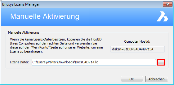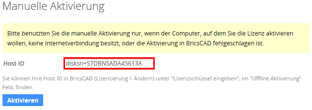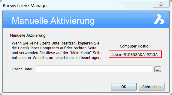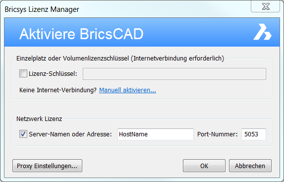 Erlaubt es, einen einzelnen Benutzer- oder Volume-Lizenz-Schlüssel auf einem Computer zu aktivieren, der nicht mit dem Internet verbunden ist. Es ist ein anderer Computer, der über einen Internet-Anschluss verfügt, erforderlich, um eine gültige Lizenzdatei vom BricsCAD-Lizenzserver abzurufen.