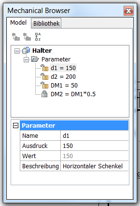 Eine Bemaßungs Abhängigkeit im Mechanical Browser bearbeiten: