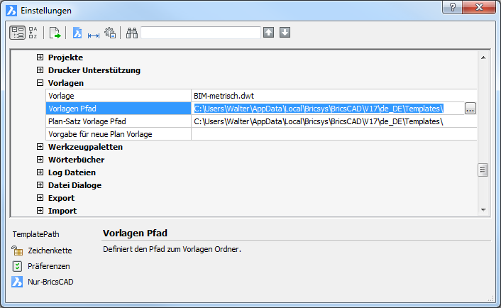 So stellen Sie die Variable für den Vorlage Pfad ein