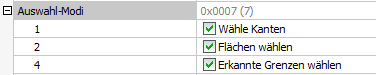Steuert die automatische Fenstertechnik (innen oder außen), beim der Auswahl von Objekten. Der Wert wird als Summe der ausgewählten Optionen in einem Bitcode gespeichert.