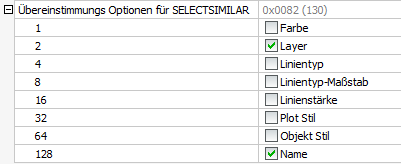 Steuert, welche Eigenschaften für ein Objekt des gleichen Typs übereinstimmen müssen, um mit dem Befehl SELECTSIMILAR ausgewählt zu werden.