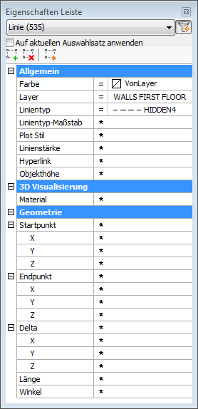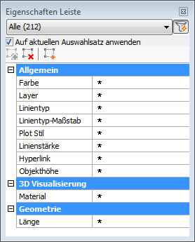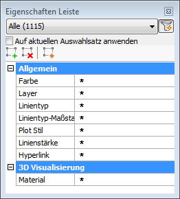 - Legen Sie den Eigenschaft Filter fest, z. B. Farbe, Layer und Linietyp.