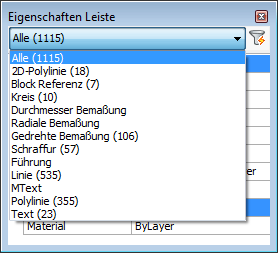 - Klicken Sie auf die Taste Auswahl Liste, um alle Objekt Typen in der Zeichnung oder des aktuellen Auswahlsets (siehe vorherigen Schritt) anzusehen.