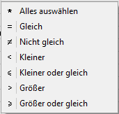 Klicken Sie auf das = Zeichen, wählen Sie dann einen Operator in der Liste.