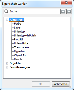 Der Dialog Eigenschaft wählen wird angezeigt. - Wählen Sie eine Eigenschaft aus und klicken Sie dann auf die Schaltfläche OK.
