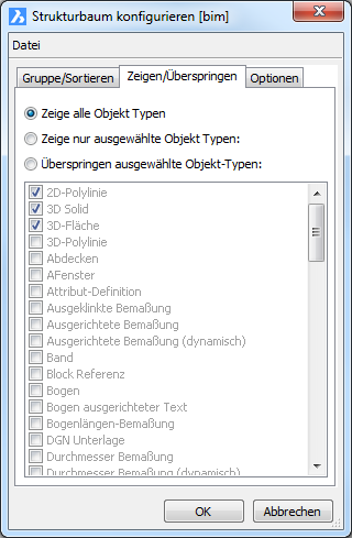 Der Dialog Strukturbaum konfigurieren wird geöffnet: