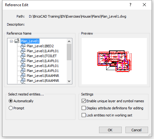 Bearbeitung von Block Referenzen und extern referenzierten Zeichnungen durch die Eingabe in einen Dialog (kurz für "Referenz-Bearbeiten").