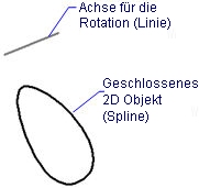 Erzeugt 3D-Volumenkörper oder Oberflächen Objekte durch die Rotation von offenen oder geschlossenen 2D-Objekten und Kanten von Volumenkörpern und Flächen.