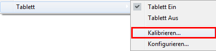 Wählen Sie Tablett im Menü Einstellungen, dann wählen Sie Kalibrieren im Flyout Menü.