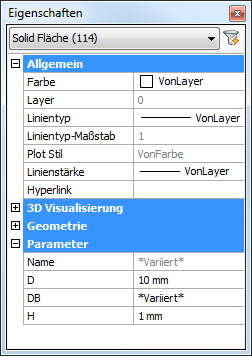 Bearbeiten von Parametern in der Eigenschaften Leiste