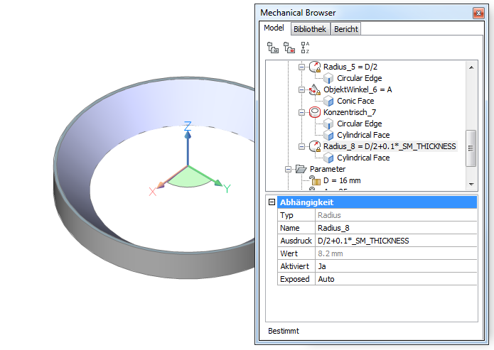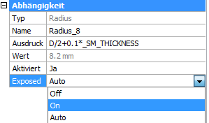 Geben Sie D / 2 + 0,1 * _SM_THICKNESS im Feld Ausdruck der Radius_8 Abhängigkeit ein.