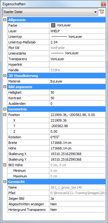 Die folgenden Eigenschaften wirken sich auf das Bild aus: |
