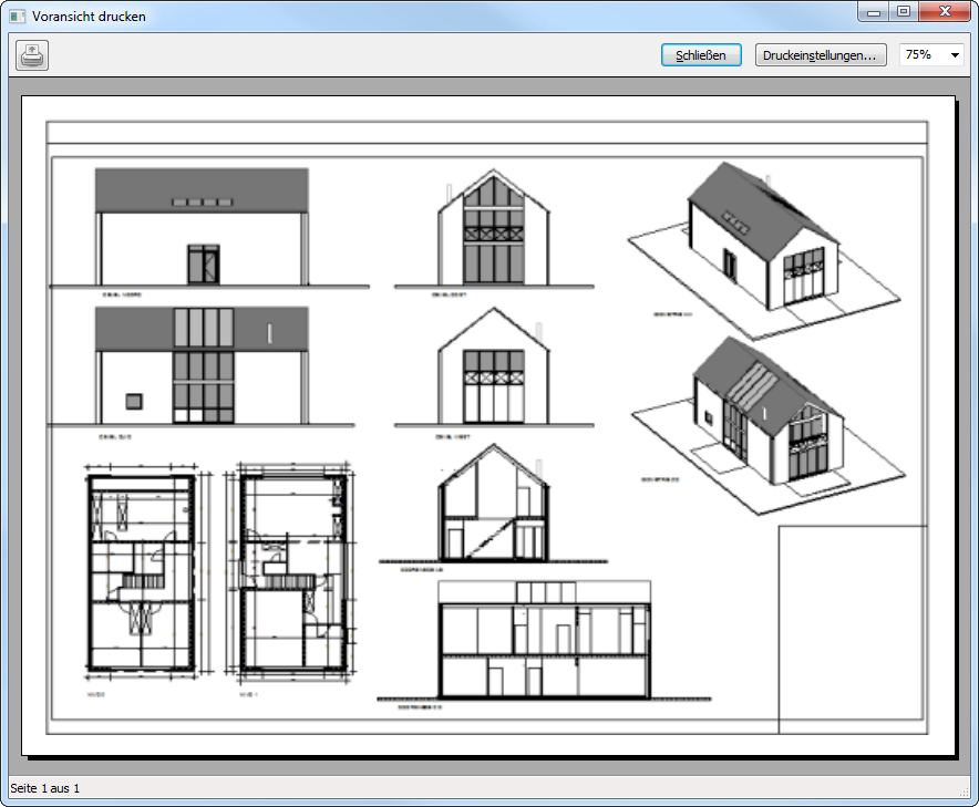 Klicken Sie auf Drucken, um die Zeichnung zu plotten, oder klicken Sie auf Schließen, um wieder zu BricsCAD zurückzukehren.