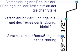 Ziehen Sie den Griff in der Mitte des Textes, um diesen zu verschieben; die gesamte Bemaßung wird in der Zeichnung verschoben.